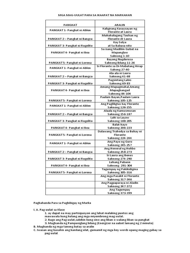 View KABANATA 8-11 FLORANTE AT LAURApptx from FILIPINO 115 at Don Mariano Marcos Memorial State University. Patuloy ang pagdadalamhati ni Florante dahil sa pagkabigo sa pag-ibig kay LauraKasukdulan. Amang MapagmahalAmang MapaghangadGereroy namangha nang itoy marinig pinagbaling-baling sa gubat ang titig.